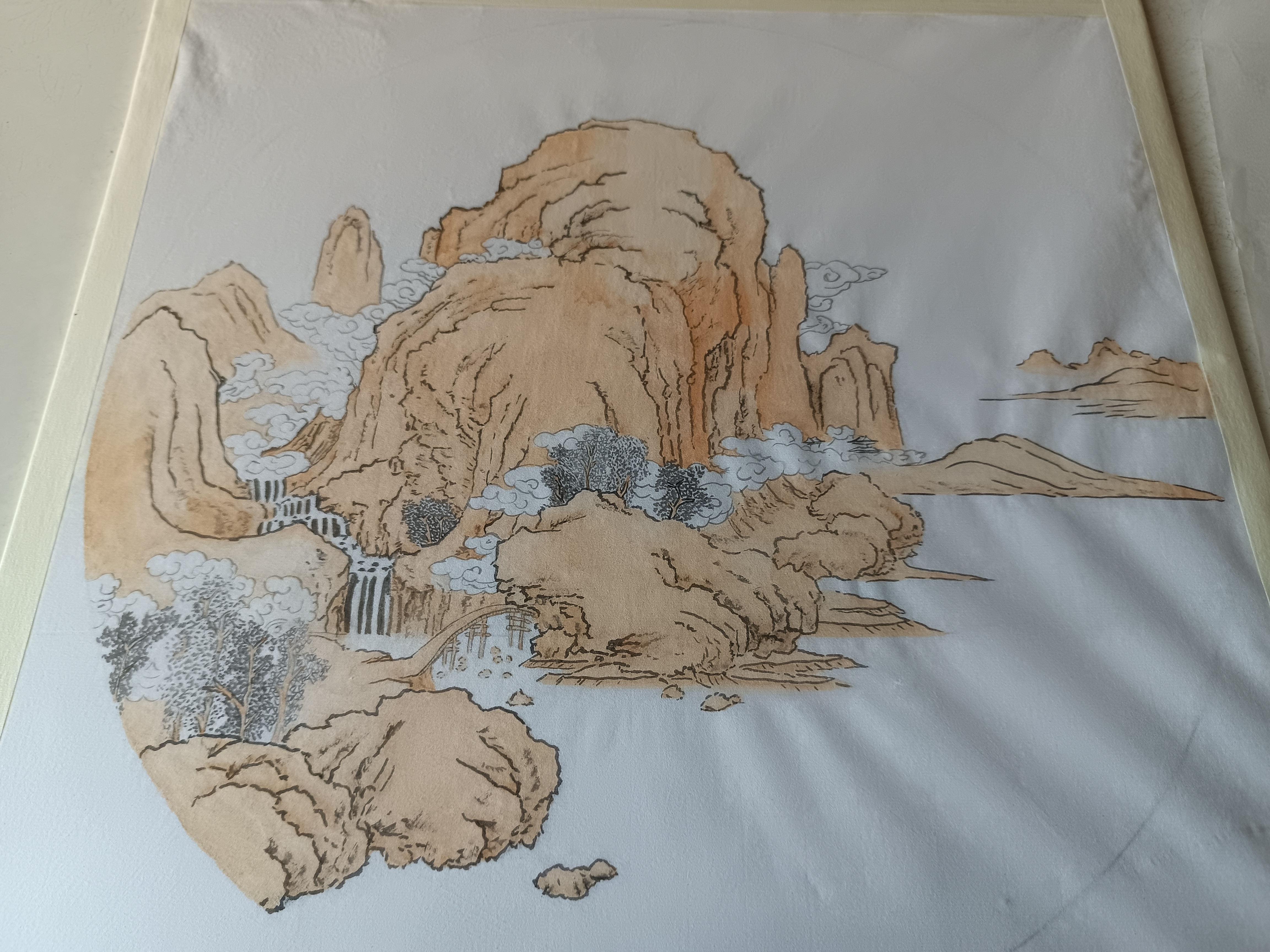 Какой же кайф! Контур в пейзаже, т-т-т, рисовать куда проще, чем в цветочках. Здесь нет бесконечных тонких плавных линий, все довольно угловатое. А если рука и дрогнет лишнее, то можно сделать вид, что так и надо)) Три человека сегодня были и почти одновременно начали - соседка моя весь контур закончила, кажется, у меня облака остались и деревья, а у третьей девушки ещё горы не до конца, но она и пришла позже.